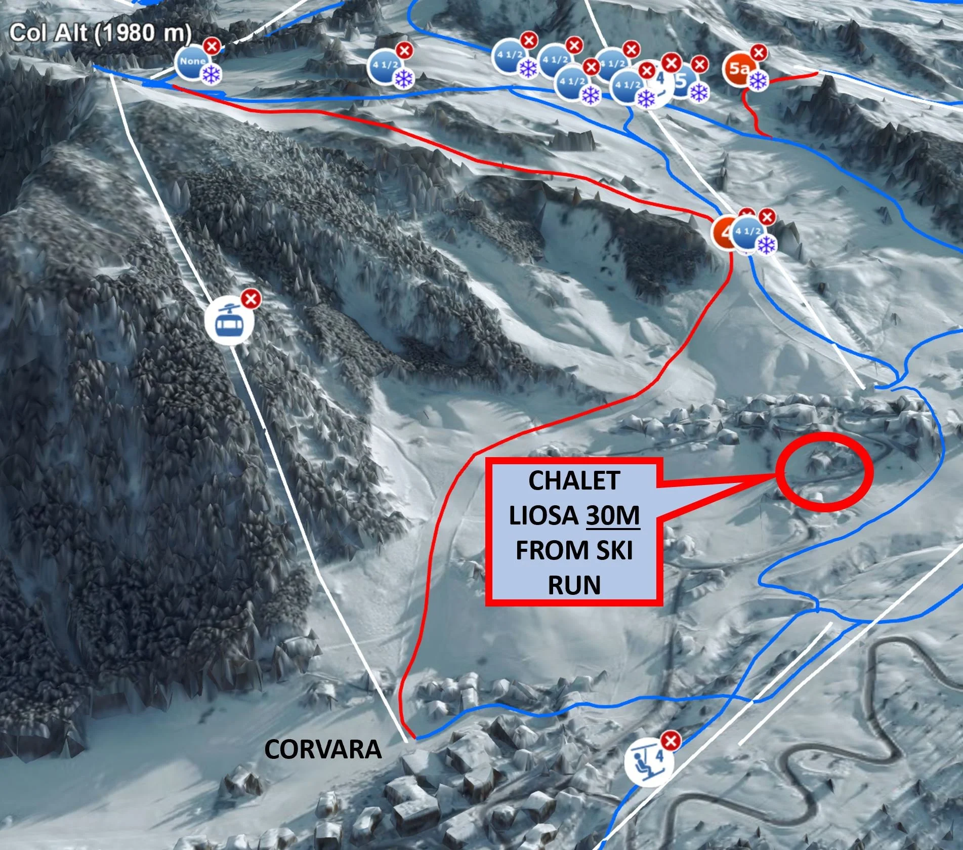 You will love the direct access to the Sellaronda and Dolomiti Superski, simply walk across the road, put your gears on and take off for another great day on the slopes. Thanks to the ideal location on the ski run, you can quickly pop back to Chalet Liosa for short break, whether you want to grab a snack, pick up the rest of the group, or make a business call. It means you can spend more time on the slopes and zero time commuting.